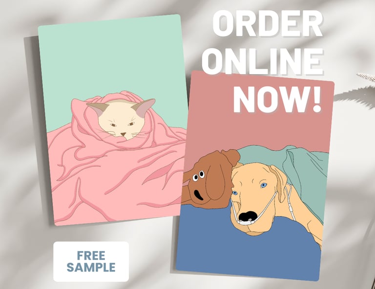 Customised veterinary condolence cards for clinics seeking premium, heartfelt artwork to support grieving pet owners. Designed locally in New Zealand by a veterinary professional.